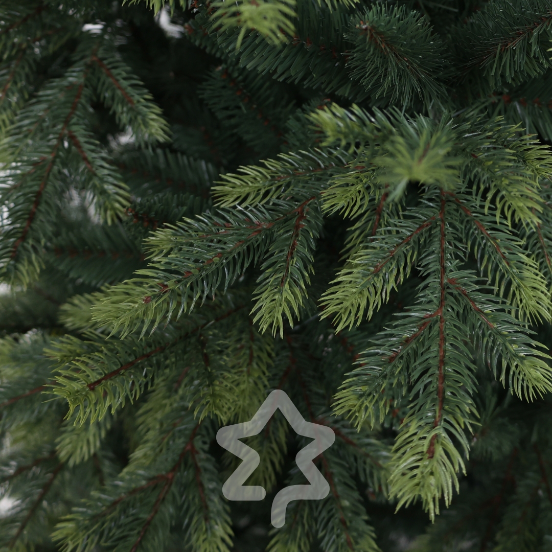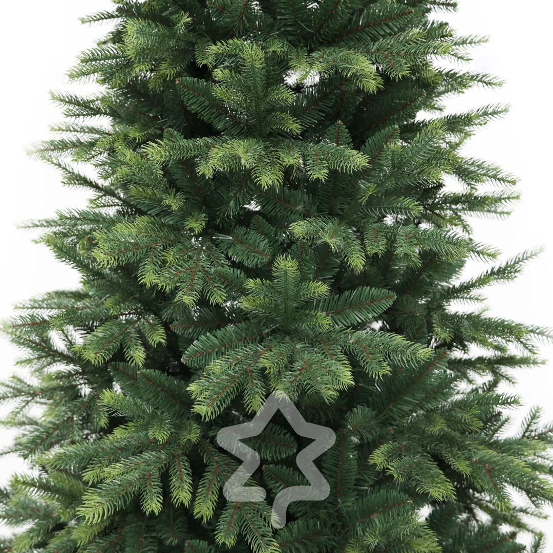 Smrek Himalájsky 180 cm sa vyznačuje elegantnou siluetou a tradičným vzhľadom a kombináciou 3D PE a 2D PVC ihličia s dvojfarebným efektom.